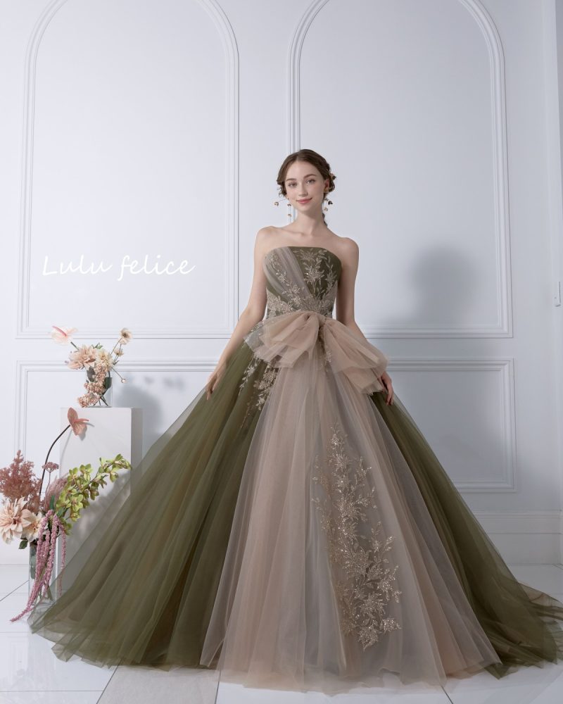 目を引くハイライトカラーのチュールがまるでプレゼントBOX に結ばれたリボンのような、ラッピングリボンドレス。デザインポイントのビッグリボンは自由な位置に移動可能。取り外せばシンプルなハイライトカラードレスに。自分らしさあふれるお好みのコーディネートを楽しんで。