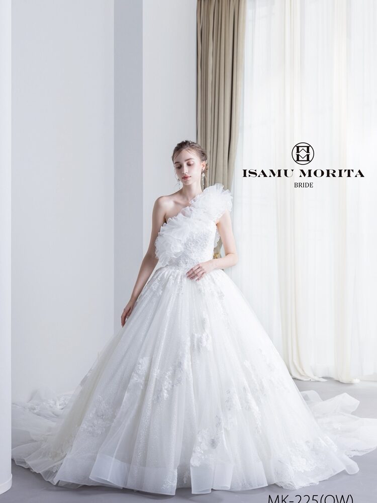 ふんわりと重ねたチュールに、繊細なレースモチーフを散りばめた王道のボリュームドレス。ワンショルダー、オフショルダー、ビスチェと印象を変えられるデザインで、シーンや好みに合わせた着こなしが叶います。軽やかな透明感と華やかさを兼ね備えた一着です。