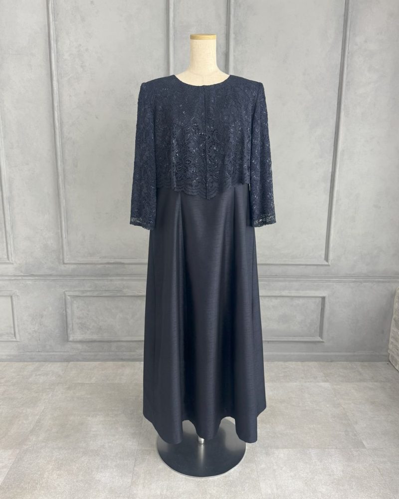 紺地黒レース袖付き