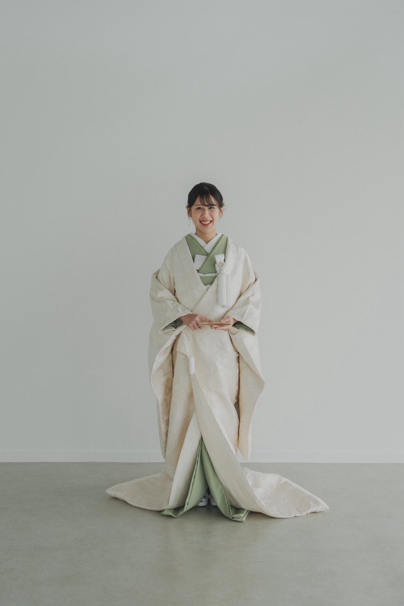 新婦様のくすみグリーンの色掛下は落ち着いた女性を引き立たせます