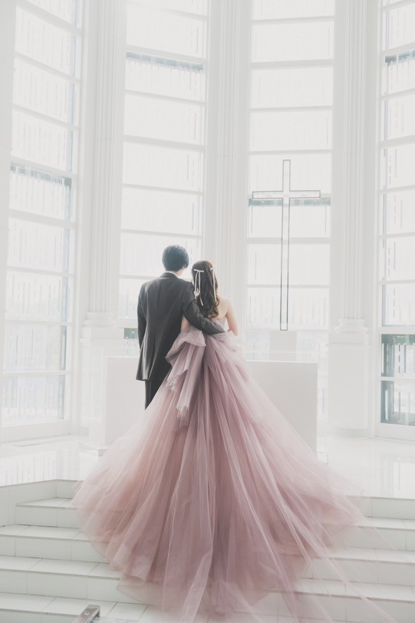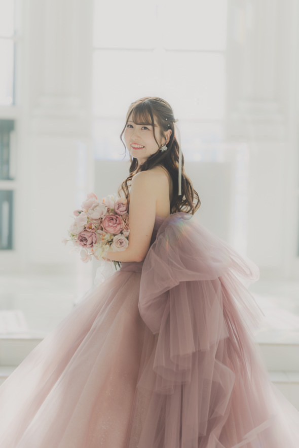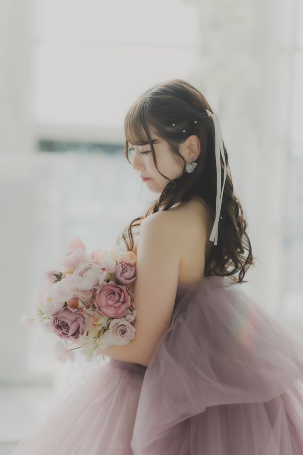 ブライダルフォトにて、新婦様のカラードレスをお手伝いさせていただきました。