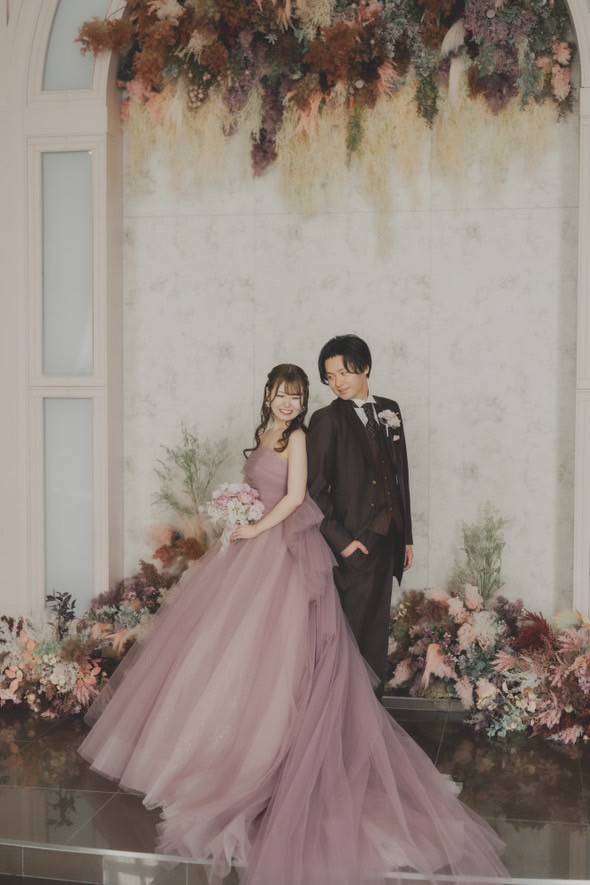 新婦様が選ばれているドレスは絶妙なバランスの色味のもので、