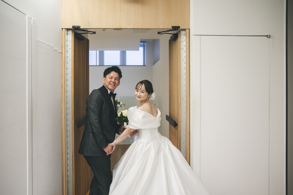 シンプルなデザインのドレスを選ばれた新婦様。